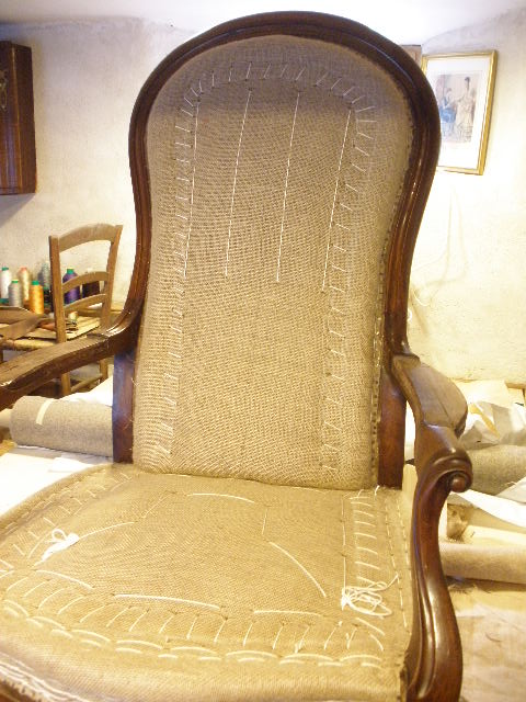 -garniture traditionnelle: sangle, ressort, fibre végétal et crin animal, toile jute…